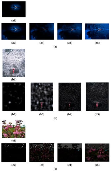 Several examples of the images’ FFPs and AIRs. (a) (a1) Original image. (a2) FFP by Ares. (a3) AIR by Ares. (a4) FFP by B4. (a5) AIR by B4. (b) (b1) Original image. (b2) FFP by Ares. (b3) AIR by Ares. (b4) FFP by B4. (b5) AIR by B4. (c) (c1) Original image. (c2) FFP by Ares. (c3) AIR by Ares. (c4) FFP by B4. (c5) AIR by B4.