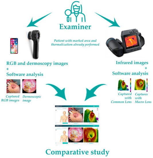 Videothermography using a TermoCam FLIR T530sc with Macro Mode lens adapter and specifics software VisionFy (Thermofy, Brazil) with Hypermax mode, and DermEngine platform (MetaOptica, Canada).