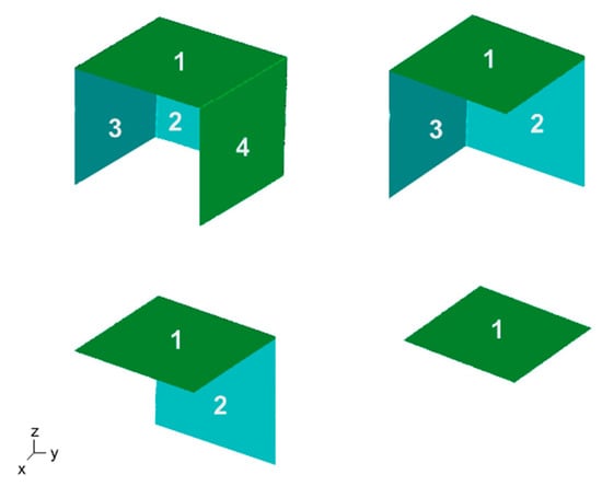 To investigate the impact of registration block features on 3D model registration, the number of geometric planes on the block was varied (Figure 4; 1, 1-2, 1-2-3, and 1-2-3-4) for each block size. Open-sourced software (CloudCompare, Telecom, Paris, v2.10.3) was used to manually select and remove desired planes within the reference and target 3D models. The aforementioned 3D registration process (Section 2.2) was then repeated for each registration block size (n = 3) and number of planes (n = 4) in triplicate, resulting in 36 registered 3D models.