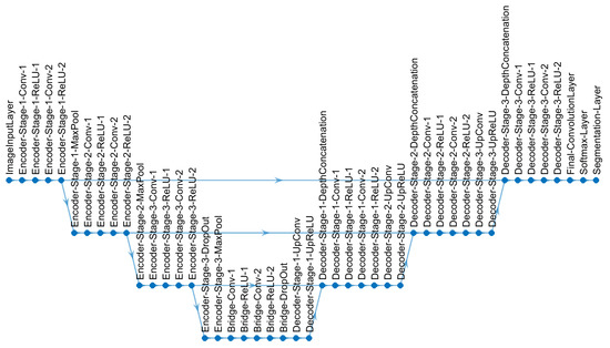 For this work, a semantic segmentation framework with a U-Net architecture was implemented in Matlab. The U-Net hyperparameters are the following: