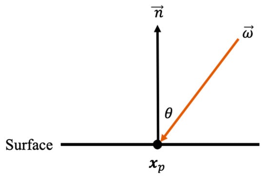 The degree of occlusion is expressed as the ambient occlusion term in the situation shown in Figure 1 and Equation (1):