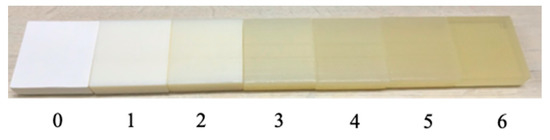 Samples corresponding to our scale. The density of the scatterer decreases from 0 to 6, approaching transparent.