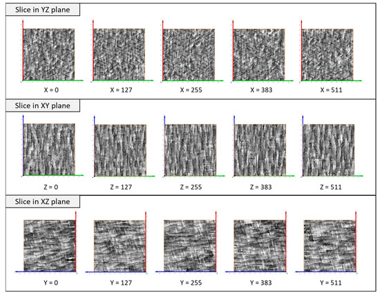 The 2D microstructures obtained from three perpendicular sections.