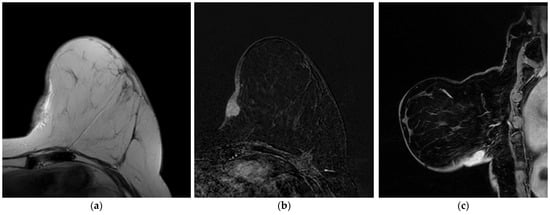 - Marchant, L.K.; Orel, S.G.; Perez-Jaffe, L.A.; Reynolds, C.; Schnall, M.D. Bilateral Angiosarcoma of the Breast on MR Imaging. AJR Am. J. Roentgenol. 1997, 169, 1009–1010. [Google Scholar] [CrossRef] [PubMed]