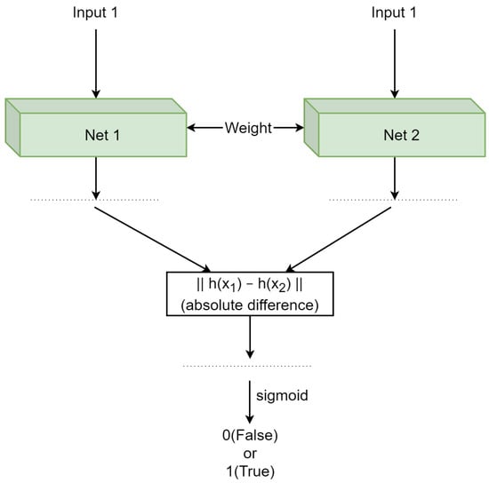 Siamese neural networks were first proposed in the context of signature verification, which is for the determination of signature forgeries []. Subsequently, they have been adopted and proven successful in a wide variety of other matching-based tasks, such as gait recognition [], sporting activity recognition [], natural language processing [], object reconstruction [] and others. Appropriately applied, Siamese neural-network-based algorithms have been shown to improve classification accuracy and enhance rejection quality compared with traditional convolutional neural networks []. Moreover, SNNs can significantly reduce the number of hyperparameters during model training and improve operational speed while maintaining their superior accuracy performance [].