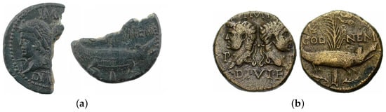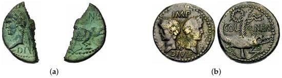 Examples of RIC 158 of Augustus. (a) An incomplete specimen of RIC 158 of Augustus. (b) A good condition specimen of RIC 158 of Augustus.