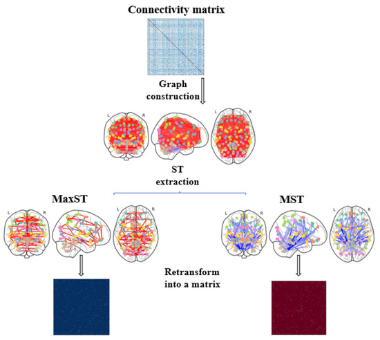 - The maximum spanning tree (MaxST): uses the same reasoning but extracts connections that present the highest weights.