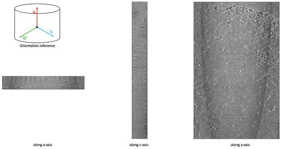 The resulting raw TomoPy reconstruction was a large volume of size and required additional alignments to correct for the various motion involved in collecting the data, as shown in Figure 4. As these raw data contain a great deal of noise and irrelevant parts, we proceed to develop an algorithm that will allow us to cleanly crop out those regions. In the process, we inverted the grayscale volume and obtained a maximum projection [40] image on the stacks to facilitate our ability to locate corners.