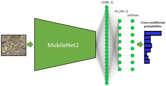 - Data quality control. Due to human errors, the data always contain some portion of samples with a poor quality of images or their labels. For poor-quality images, we assume images with mud contamination and images with bad exposure. To eliminate the images with mud contamination, a CNN with a binary output is used. Images with bad exposure can be detected by simple image processing techniques (e.g., assigning some threshold values for the luminosity). Errors during labeling is not a rare case due to (1) high variability of visual appearance within the same lithotype and (2) similarity between certain lithologies. The implemented approach for detecting samples with errors in sample labels is presented in Section 2.2.