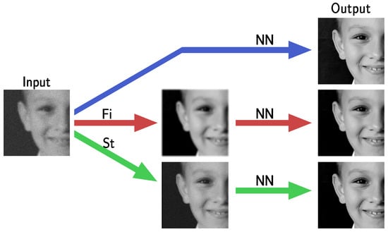 A graphical draft highlighting the introduction of pre-processing steps Fi and St defining the proposed frameworks FiNN and StNN, respectively.