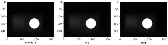 The compression of raw data using the PNG and JPEG compression algorithms are shown in Figure 23. JPEG compression is performed with the image quality parameter set to 90 while the PNG compression is lossless.