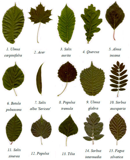 - Oskar, J.; Söderkvist, O. Computer Vision Classifcation of Leaves from Swedish Trees. Master’s Thesis, Linkoping University, Linkoping, Sweden, 2001. [Google Scholar]
