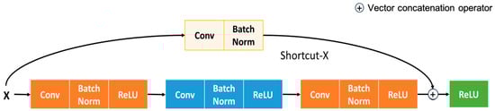 Figure 2 represents the internal structure of convolution learning with ResNet as a backbone. The introduction of batch normalization allows for increasing convolution speed and stability. Equation (1) shows the normalization process adopted in ReLU’s activation to normalize features.