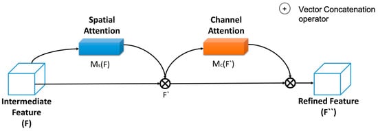 In addition, the simulation of the model also explores different pooling strategies to find the most appropriate based on input image property. Element-wise multiplication is used to produce refined intermediate features from the attention blocks. They are represented as spatial attention features F(s) and channel attention features Fc and used in Equations (4) and (5) to calculate the final output of the attention block