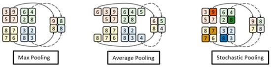 Figure 5. The pooling strategy can be selected based on image background, channel type, texture, and many more features. For instance, non-maximum values in the pooling kernel are discarded by max pooling, while the maximal feature values are not retained by average pooling. Conversely, retention of features in a certain direction is not the primary objective of stochastic pooling. Therefore, sticking to one strategy of pooling may lead to limited classification performance.