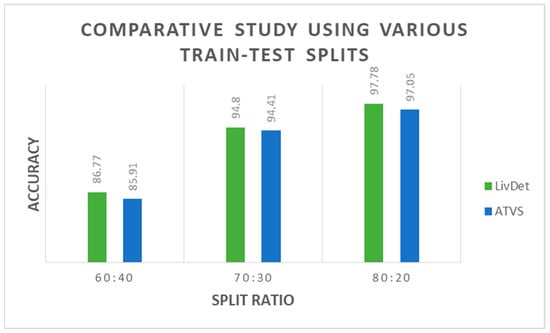 Comparison study considering various train-test ratios for the proposed architecture.