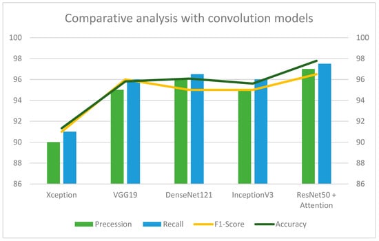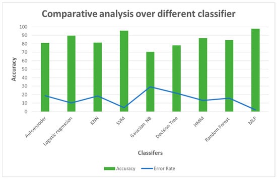Comparative analysis of the proposed dual attention-based model with different classifiers.
