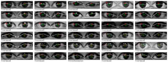 The classification results are summarized in the last two columns of Table 4. Our approach demonstrates remarkable accuracy in strabismus detection, achieving a 100 percent correct classification rate. However, it is noteworthy that for the normal eye category, there was one image that was misclassified. To provide further insight, all images, along with their classification results, are presented in Figure 6 and Figure 7.