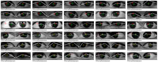 Similar observations can be made for certain strabismus cases, especially those located in column 0 and 1 of the second row in Figure 7. These images also feature pupils positioned outside the expected range. In the case of the remaining strabismus cases, their classification is attributed to distances either greater than Θleft or beyond the range of Θright, further underscoring the effectiveness of our approach in identifying strabismus based on these statistical thresholds.