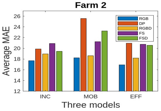 Farm 2: average MAE for three deep learning models using five different data modalities.
