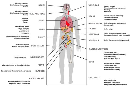 DECT technology has provided opportunities for new clinical applications, including the characterization of adrenal nodules, the detection of prostate and breast cancer, the assessment of lymph nodes (LNs), and the study of body composition.