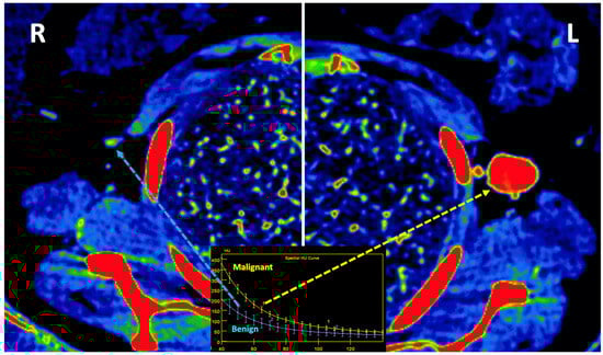 Fourth, the measurement of iodine concentration also depends on the contrast injection protocol, the time of acquisition, or factors from the patient themselves, such as cardiac input. The timing of image acquisition must be considered to avoid false-negative errors based on iodine quantification in slower and/or lesser enhancing lesions (i.e., papillary renal cancers). Iodine quantification is not a dynamic parameter, and only represents the amount of iodine contrast uptake within an object with a concrete timing following the administration of iodine contrast (Figure 18).