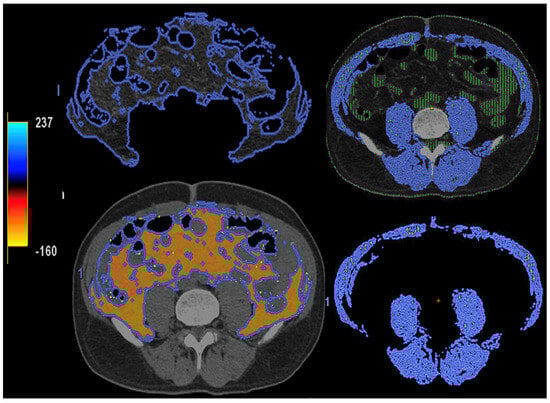 - Tolonen, A.; Pakarinen, T.; Sassi, A.; Kyttä, J.; Cancino, W.; Rinta-Kiikka, I.; Pertuz, S.; Arponen, O. Methodology, clinical applications, and future directions of body composition analysis using computed tomography (CT) images: A review. Eur. J. Radiol. 2021, 145, 109943. [Google Scholar] [CrossRef] [PubMed]