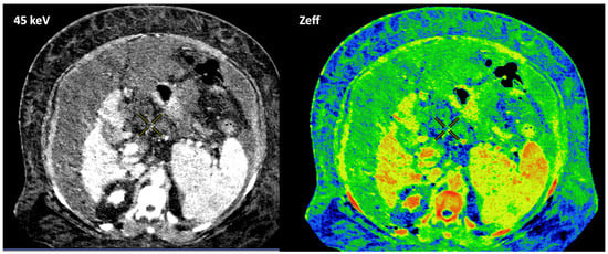 Patient’s body habitus and the presence of a massive ascite downgrades image quality and makes it impossible to adequately quantify the parameters (e.g., effective atomic number, Zeff) obtained.