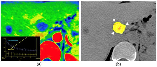 - Marri, U.K.; Madhusudhan, K.S. Dual-Energy Computed Tomography in Diffuse Liver Diseases. J. Gastrointest. Abdom. Radiol. ISGAR 2022, 5, 94–106. [Google Scholar] [CrossRef]