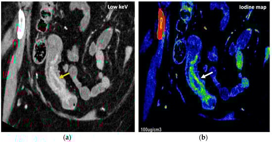 - Kim, Y.S.; Kim, S.H.; Ryu, H.S.; Han, J.K. Iodine Quantification on Spectral Detector-Based Dual-Energy CT Enterography: Correlation with Crohn’s Disease Activity Index and External Validation. Korean J. Radiol. 2018, 19, 1077–1088. [Google Scholar] [CrossRef] [PubMed]
