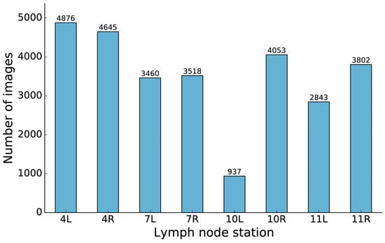 The number of images for each lymph node station indicates the balance of stations in the dataset.