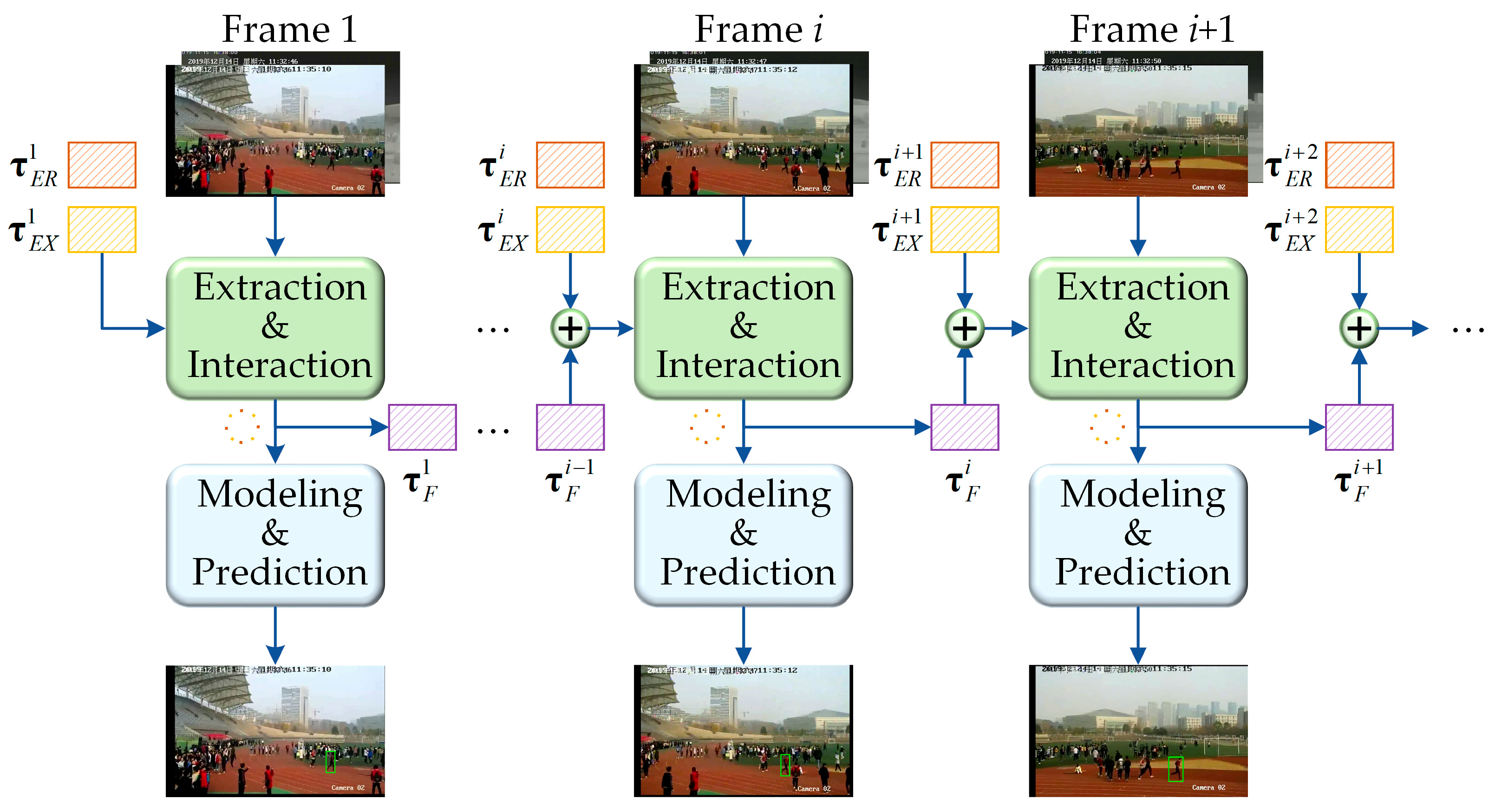 - Cao, Z.; Huang, Z.; Pan, L.; Zhang, S.; Liu, Z.; Fu, C. Towards real-world visual tracking with temporal contexts. IEEE Trans. Pattern Anal. Mach. Intell. 2023, 45, 15834–15849. [Google Scholar] [CrossRef]