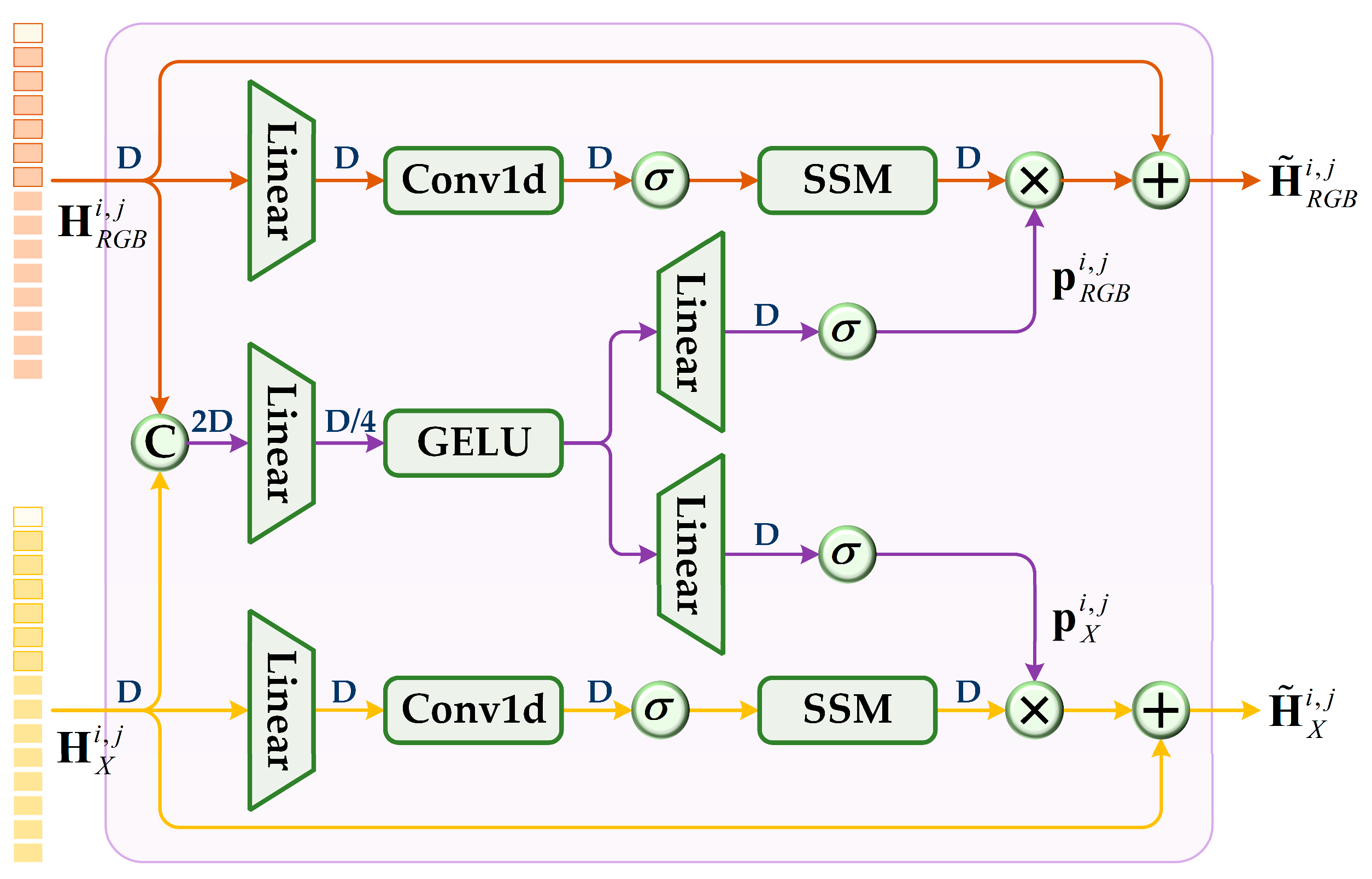 - Sun, C.; Zhang, J.; Wang, Y.; Ge, H.; Xia, Q.; Yin, B.; Yang, X. Exploring Historical Information for RGBE Visual Tracking with Mamba. In Proceedings of the Computer Vision and Pattern Recognition Conference, Nashville, TN, USA, 11–17 June 2025; pp. 6500–6509. [Google Scholar]