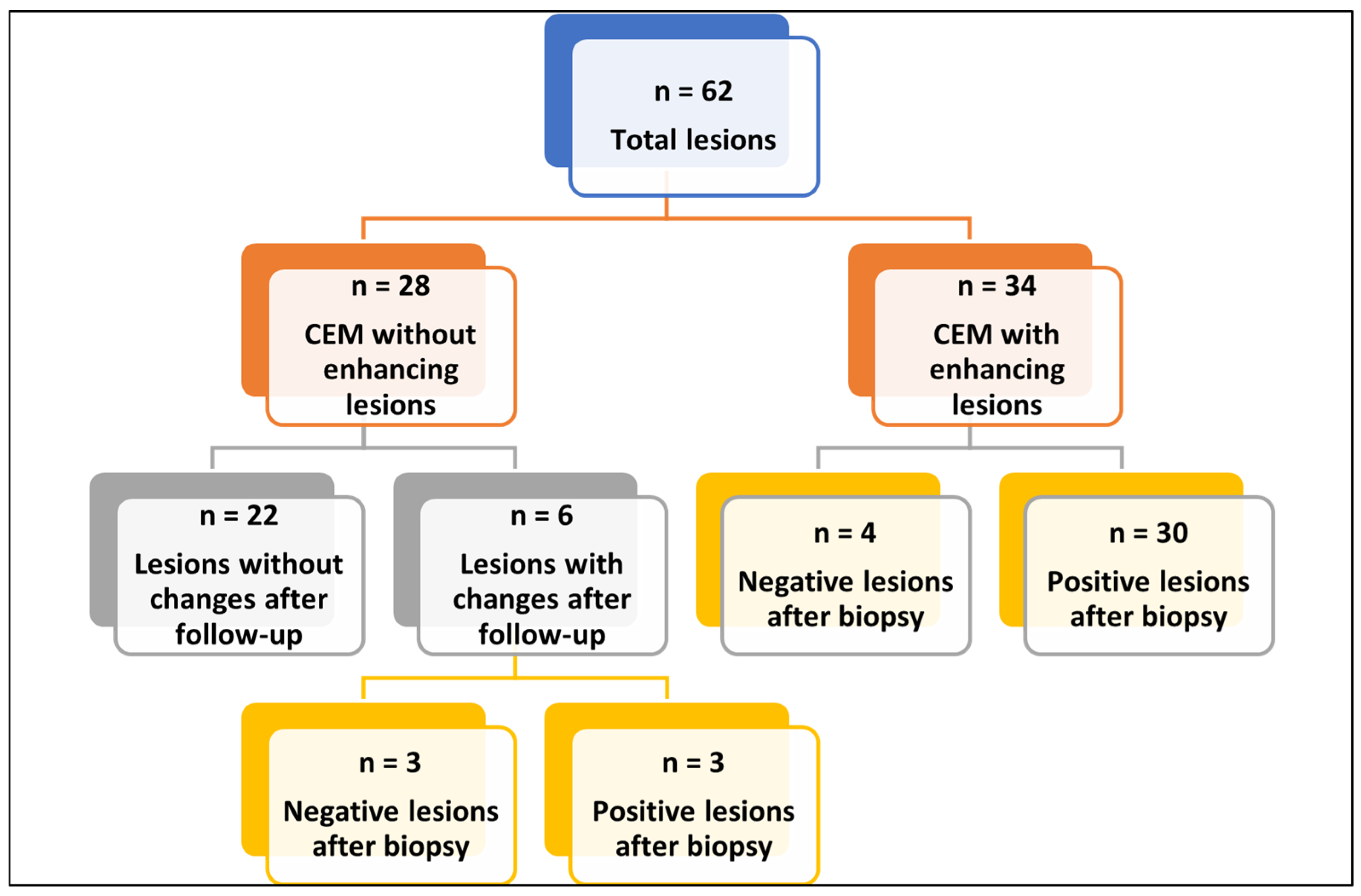 3.4. Diagnostic Performance of Conventional Imaging and CEM