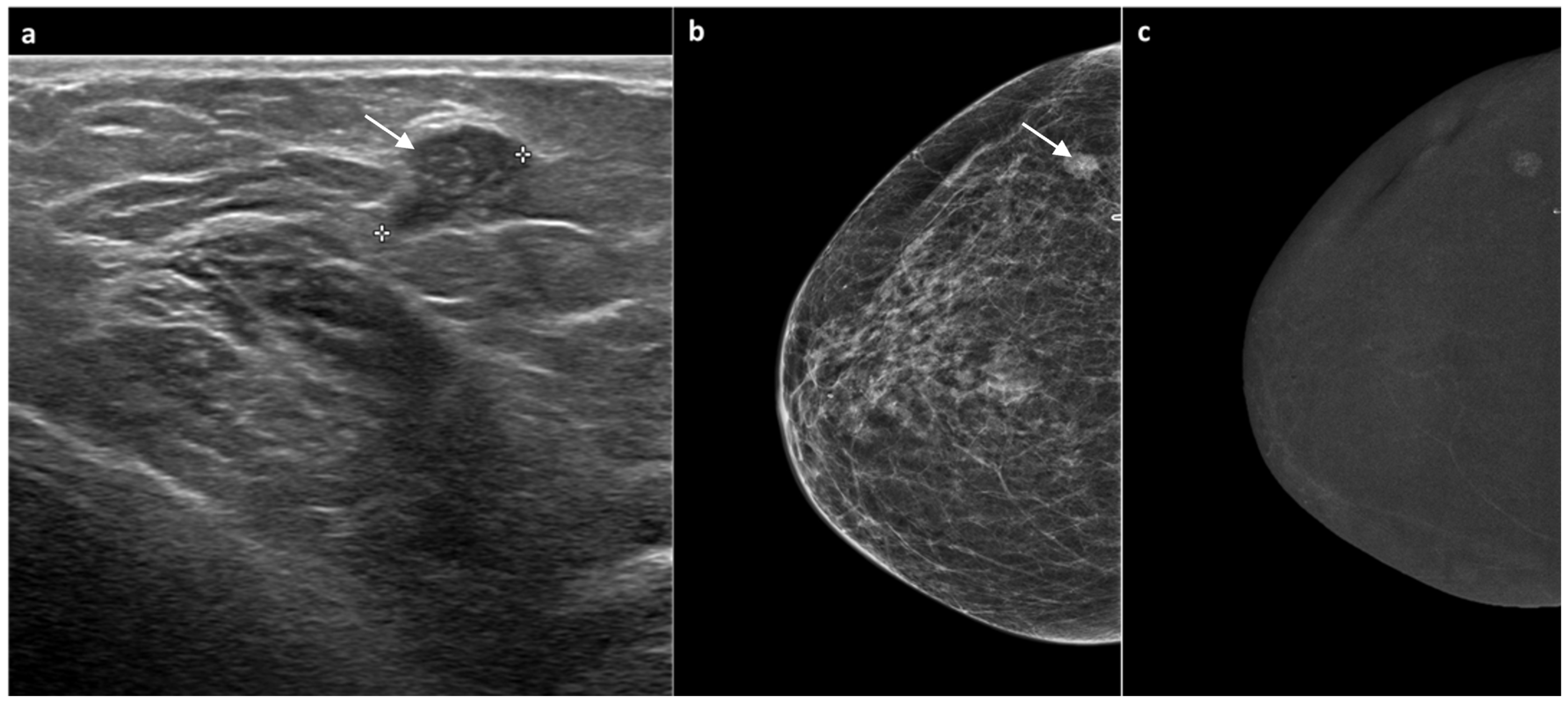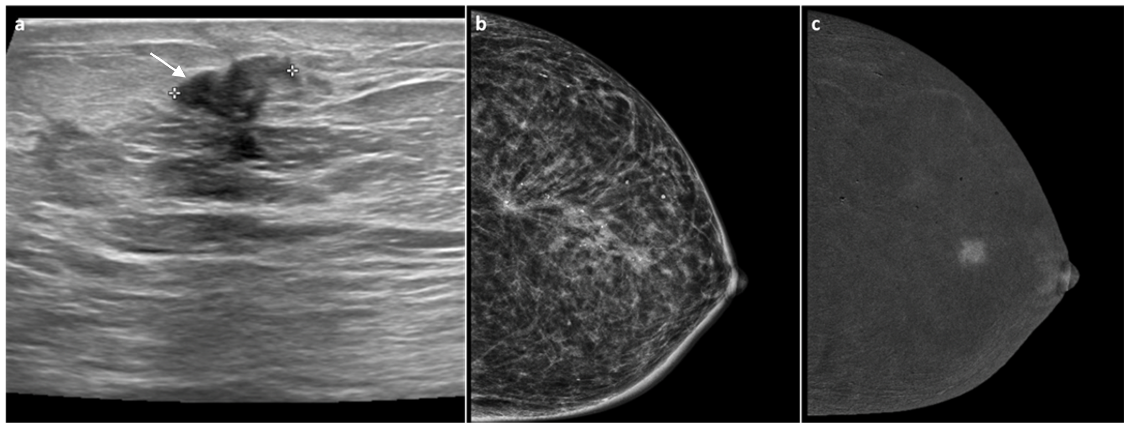- Pötsch, N.; Vatteroni, G.; Clauser, P.; Helbich, T.H.; Baltzer, P.A.T. Contrast-enhanced Mammography versus Contrast-enhanced Breast MRI: A Systematic Review and Meta-Analysis. Radiology 2022, 305, 94–103. [Google Scholar] [CrossRef] [PubMed]