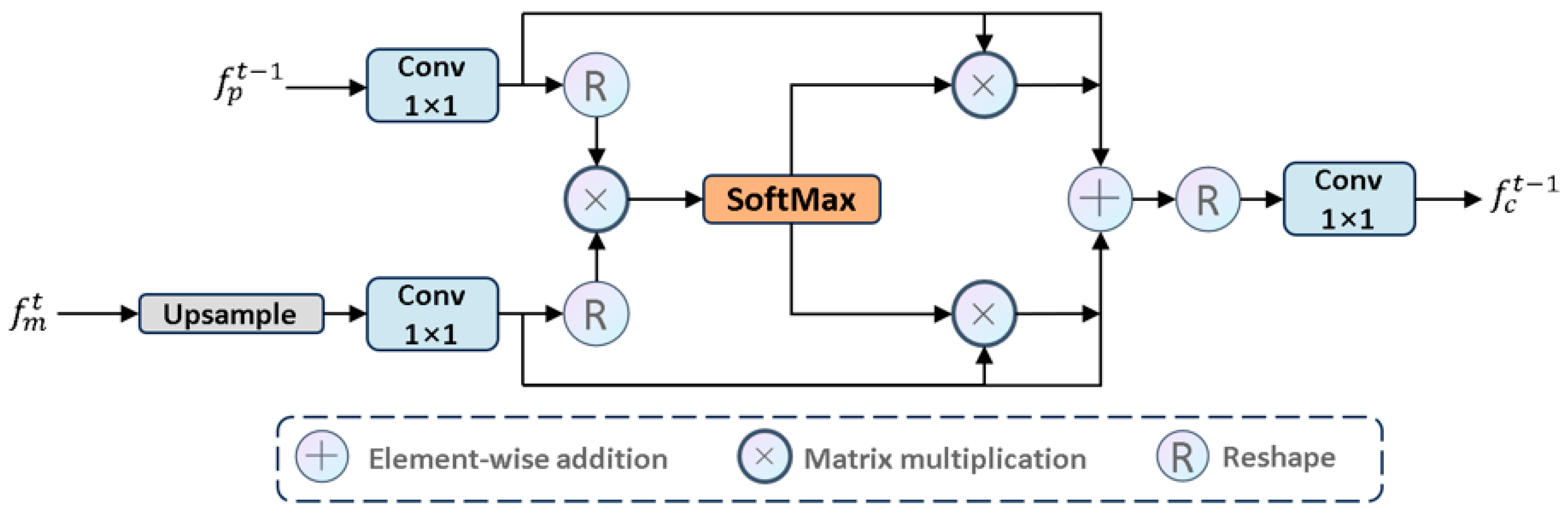 denotes matrix multiplication. To globally extract deep high-level semantic information and capture shallow texture details, thereby promoting cross-layer feature complementarity, we designed two branches: