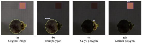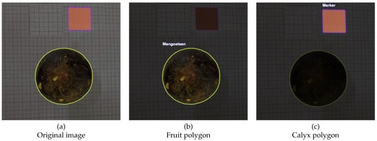Garcinia mangostana L.)—are difficult due to their large calyx, which may lead to difficulties in solving using traditional form-modeling methods. Traditional geometric solutions such as ellipsoid approximations, diameter–height estimation, and shape-from-silhouette reconstruction often fail because the irregular calyx generates asymmetric protrusions that violate their basic form assumptions. We offer a novel study framework employing both multi-view instance segmentation and hybrid geometrical feature modeling to quantitatively model mangosteen volume with traditional 2D imaging. A You Only Look Once (YOLO)-based segmentation model was employed to explicitly separate the fruit body from the calyx. Calyx inclusion resulted in dense geometric noise and reduced model performance (