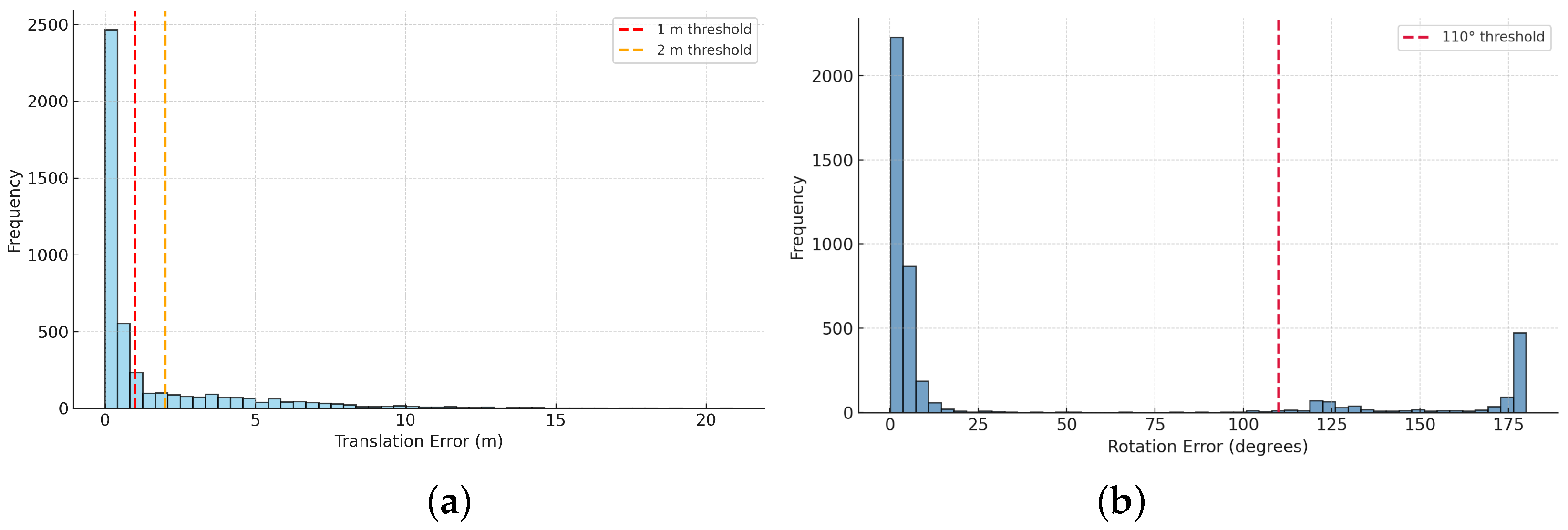 - Brachmann, E.; Krull, A.; Nowozin, S.; Shotton, J.; Michel, F.; Gumhold, S.; Rother, C. DSAC — Differentiable RANSAC for Camera Localization. In Proceedings of the 2017 IEEE Conference on Computer Vision and Pattern Recognition (CVPR), Honolulu, HI, USA, 21–26 July 2017; pp. 2492–2500. [Google Scholar] [CrossRef]