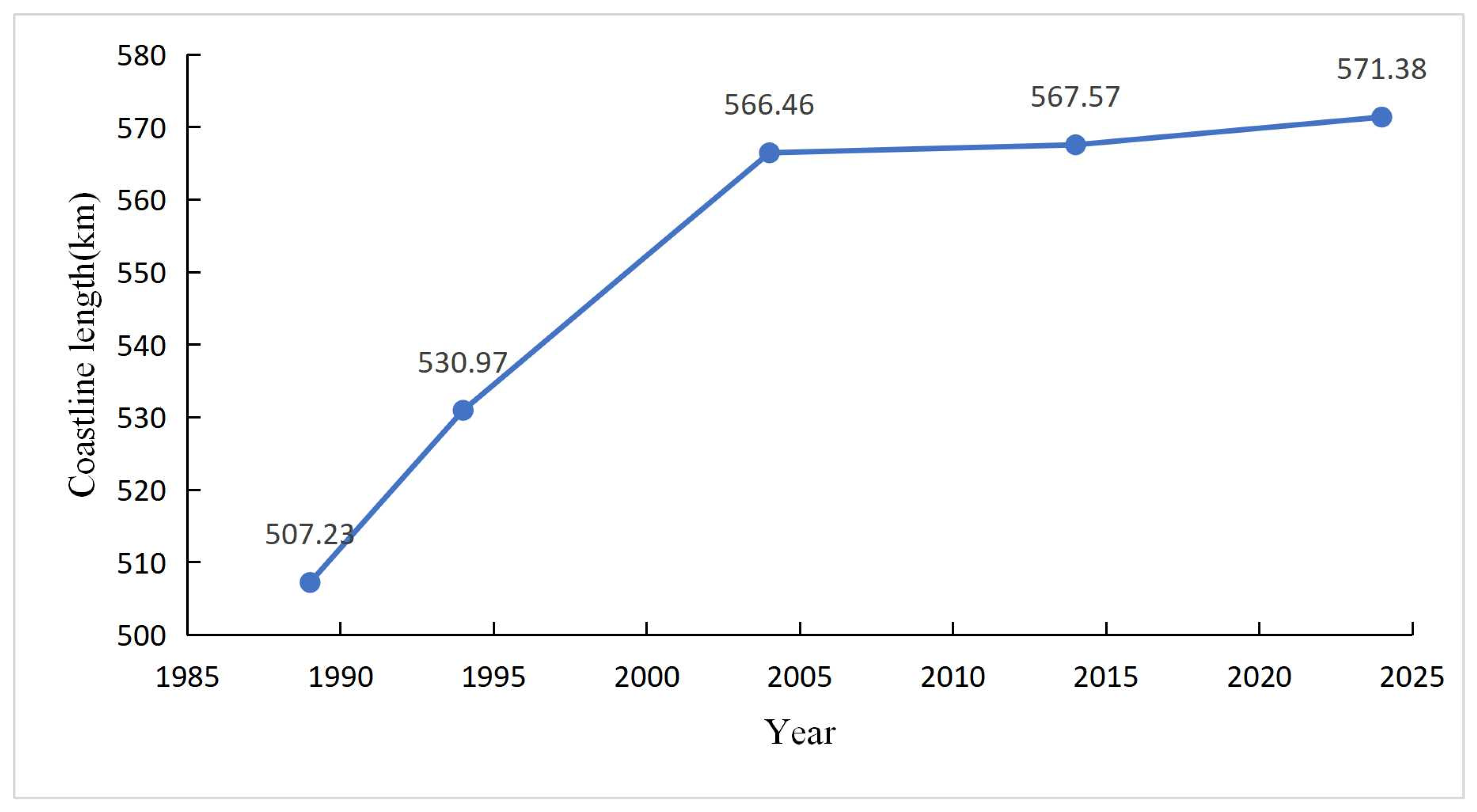 3.2. Analysis of Changes in Coastline Length