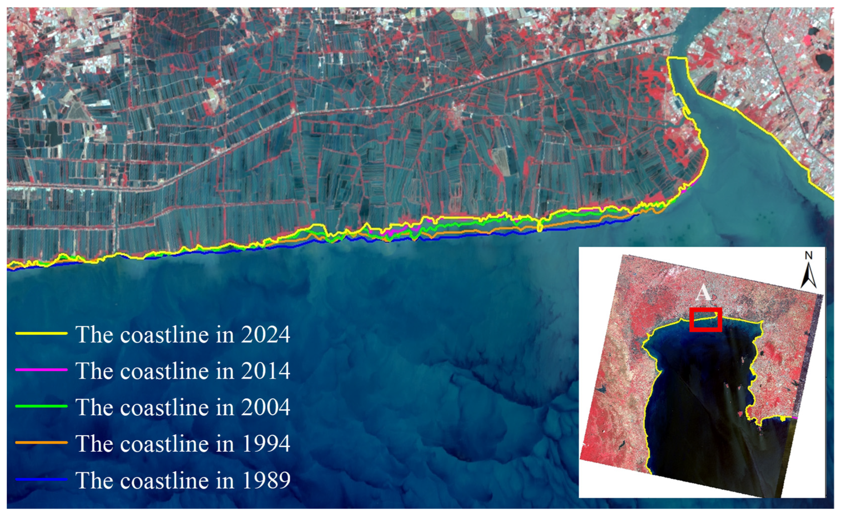 2.5. Calculation Method of Coastline Change