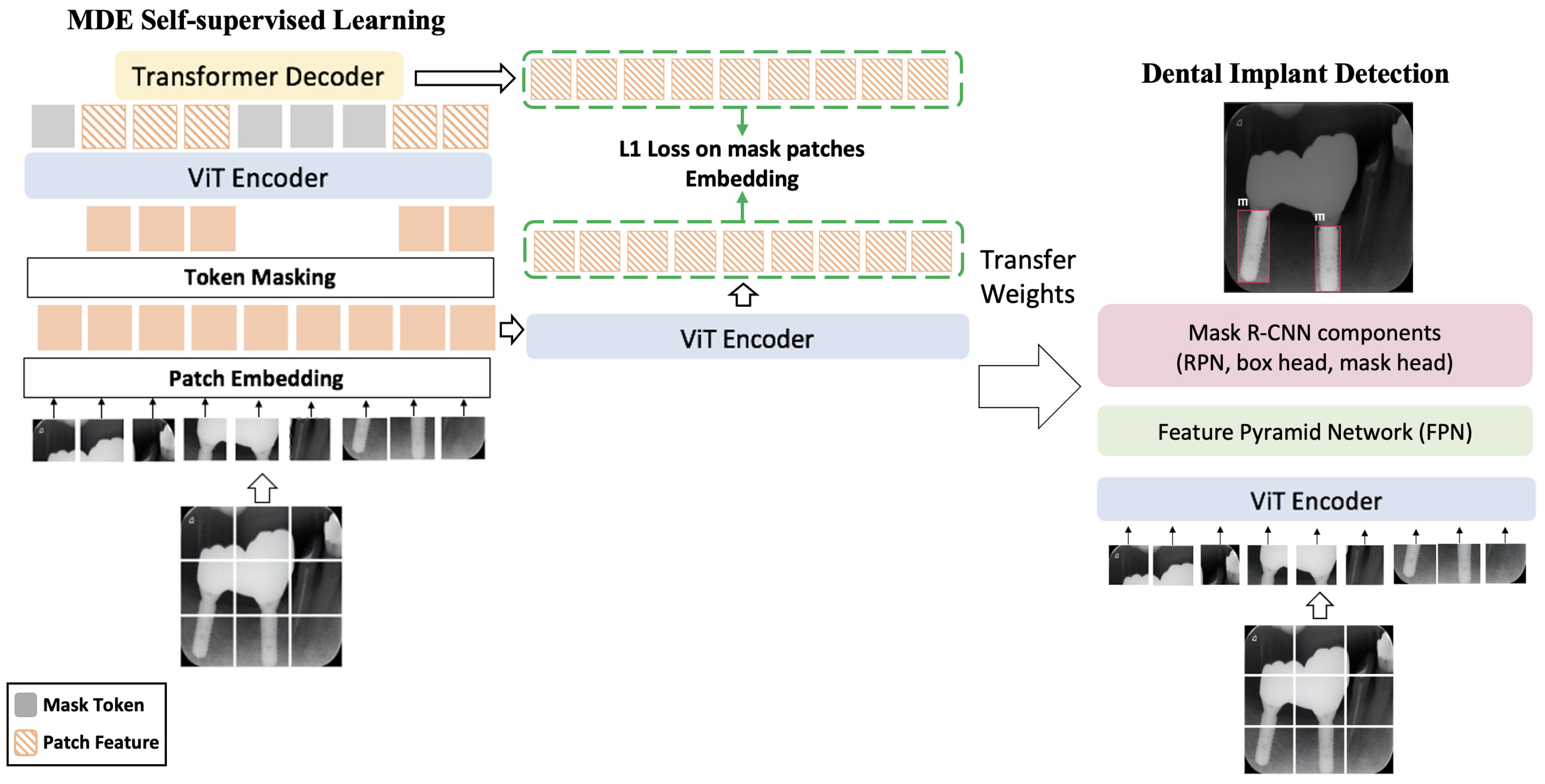 - Almalki, A.; Latecki, L.J. Enhanced Masked Image Modeling for Analysis of Dental Panoramic Radiographs. In Proceedings of the 2023 IEEE 20th International Symposium on Biomedical Imaging (ISBI), Cartagena, Colombia, 18–21 April 2023; IEEE: New York, NY, USA, 2023; pp. 1–5. [Google Scholar]