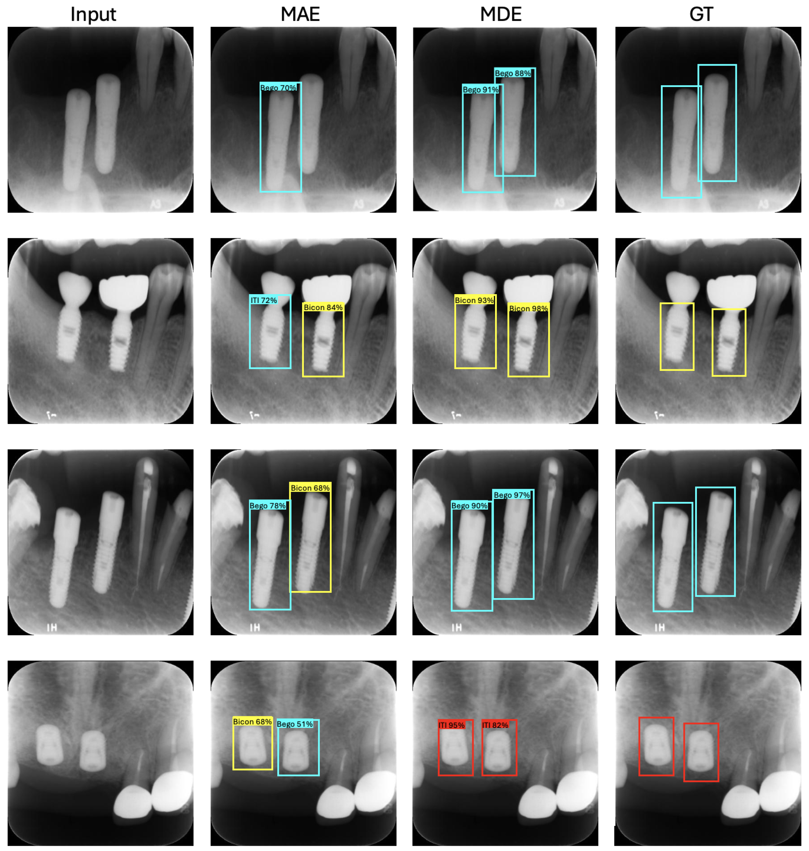 - Our proposed method yields substantial performance improvement, surpassing all state-of-the-art methods in the dental implant detection task.