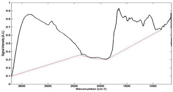 Spectral acquisition was performed in the 650–4000 cm−1 range with 4 cm−1 resolution, after 100 scans, using the cosine function as apodization. Each FTIR spectrum was baseline corrected using the so called selection point method [11] available on several FTIR and FTNIR instruments. Given a spectrum such as the plot below (Figure 3), by means of the graphical user interface we selected some points in the plot where the linear curves are identified.
