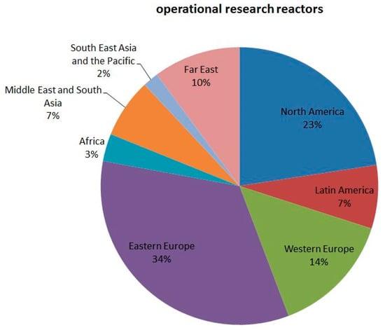 In addition, there are still reactors under construction and planned (mainly in developing countries) while the utilization rate is only high for 42 installations. This describes the high potential for further NI facilities in the world-wide context. It is also very interesting how the 217 reactors are distributed in the different geographical regions. This picture is given by Figure 5. Surprisingly, Eastern European countries host the majority of RRs. However, the numbers of installations do not necessarily correspond to the performance and quality of the beam lines. On the other hand, the number of aged reactors (see Table 3) is quite high with a shutdown risk in the near future.