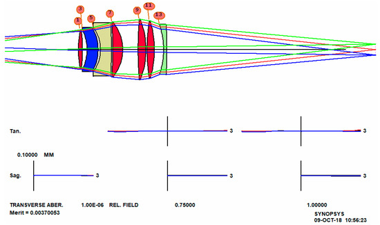 We add the line AEI 7 1 123 0 0 0 50 10 to the optimization MACro and run it again. The lens is further improved, as shown in Figure 12.