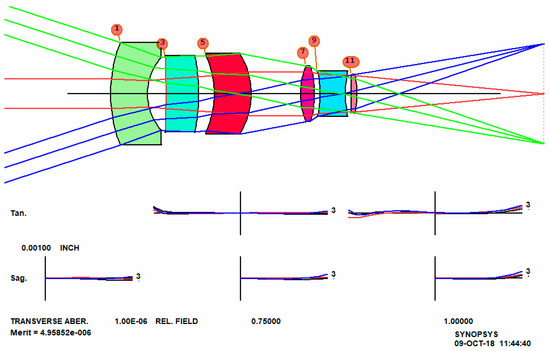 - Dilworth, D.C. SYNOPSYS Supplement to Joseph M Gary’s Introduction to Lens Design; Willmann-Bell: Richmond, VA, USA, 2013. [Google Scholar]