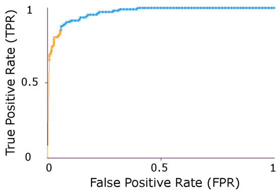 - Bradley, A.P. The use of the area under the ROC curve in the evaluation of machine learning algorithms. Pattern Recognit. 1997, 30, 1145–1159. [Google Scholar] [CrossRef]