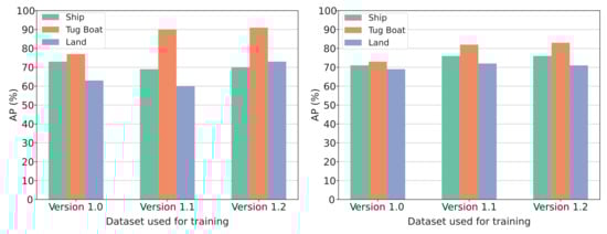 It is possible for multiple instances of a class to be present in a single image, as seen on both datasets. This is especially apparent with the tugboat class in both datasets. Even though more instances of tugboats are present in the images, the number of images with each class present is close to the same. The images are a mix of classes taken at different altitudes and always pointing straight down from the UAV. Examples from the datasets can be seen on Figure 4.