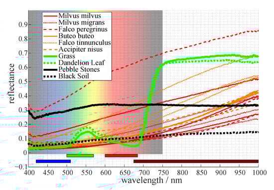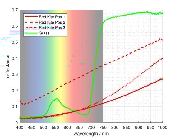 Reflectance measurement result of Milvus milvus (Figure 5) compared to that of grass.
