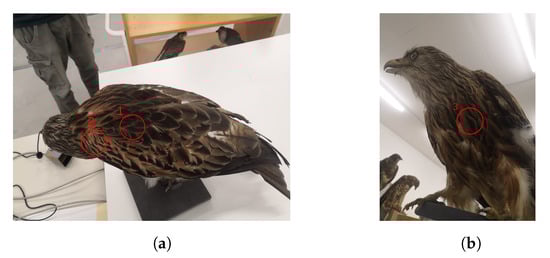 Measurement positions on the back (a) and on the front side (b) of a Milvus milvus (red kite).